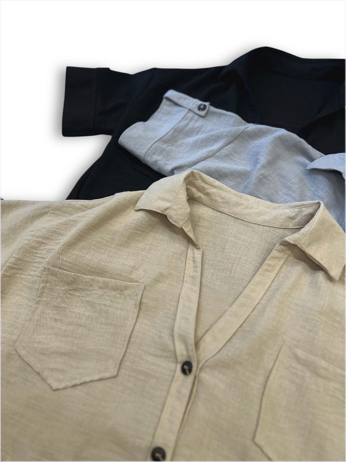 CAMISA LINO CORTA OVER BOLSILLOS
